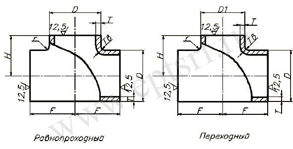 равнопроходных тройников; больший наружный диаметр торцов переходных
